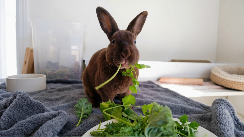 Many rabbits don’t drink enough water from their bowls, especially if they are on a pellet-heavy diet. Herbs like cilantro are a “stealth” way to get moisture into their system. This constant flushing is the best defense against bladder sludge, which is a painful and common issue for domestic buns.