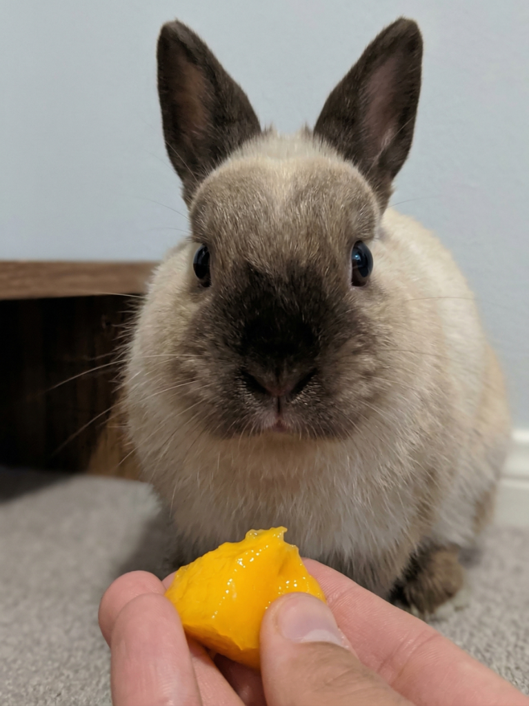 In the grand scheme of rabbit husbandry, mango is a high-value reward that can make bonding sessions a delight. For Mocha and Chino, a tiny piece of chilled mango on a summer afternoon is a special event, but it is one that we manage with a “safety-first” mindset.